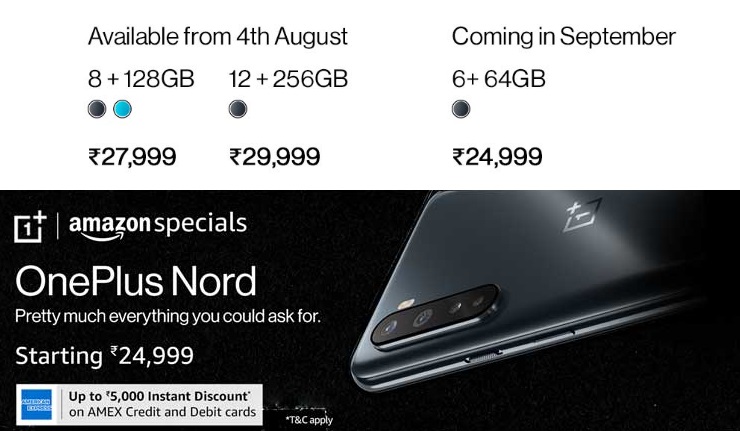 OnePlus Nord open sale from August 4 on Amazon India ... , The Oneplus Nord Starts At Rs 24,999 For The Base 6Gb Ram/64Gb Variant, Which Will Be Made Available In September.