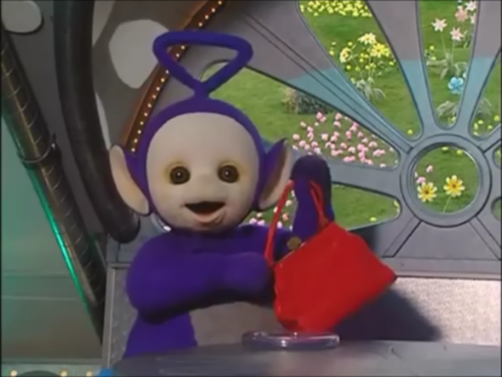 Tinky-Winky's Heavy Bag | Films, TV Shows and Wildlife ... . Tinky Winky Joins Hand Stacking Uploaded By Kym Collector Bot.